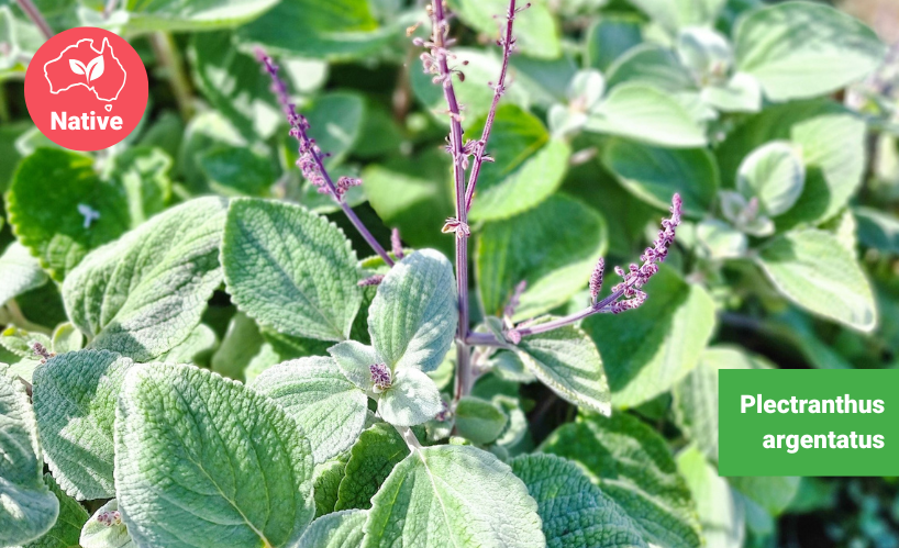Native shade plants are generally lower maintenance, well adapted to local conditions, and valuable for supporting wildlife. Plants such as our native Plectranthus argentatus [Silver Spurflower], will thrive even in challenging Australian conditions such as under Eucalyptus trees.