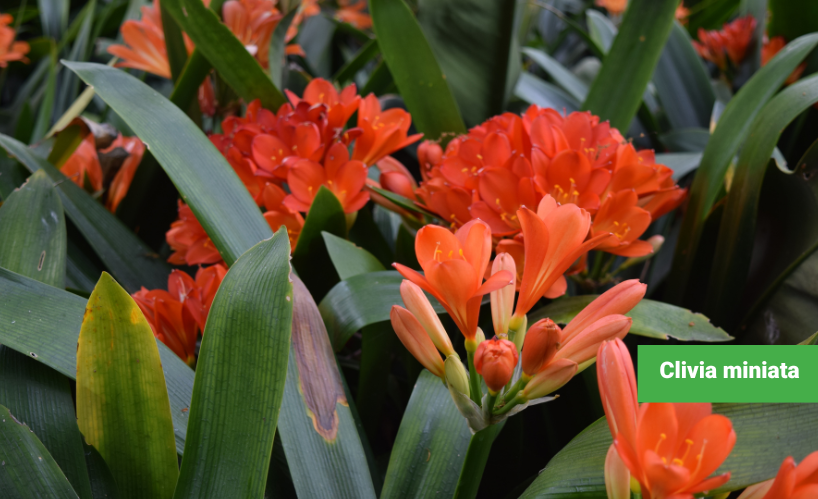 Helleborus, Daphne odora, Clivia miniata, and Correa provide winter flowers.