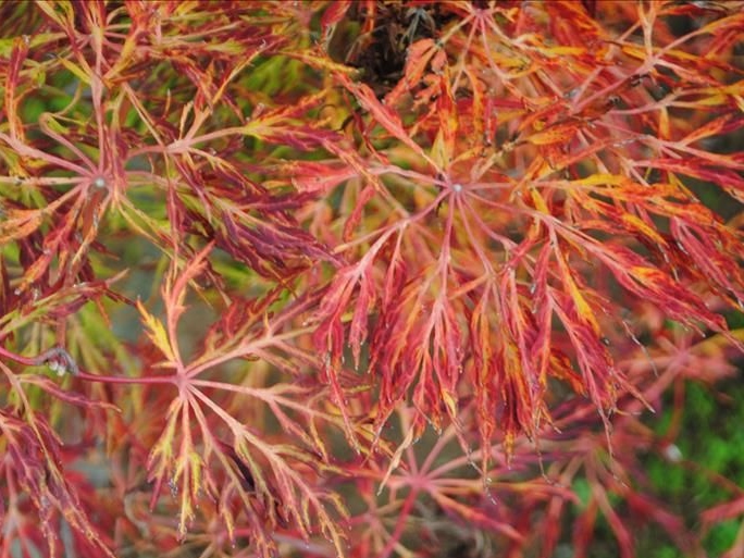 Beautiful, dwarf Japanese Maple with small lace-like, finely dissected leaves. In spring, green leaves emerge changing to red, orange and yellow in autumn. Great for use in Japanese themed gardens.