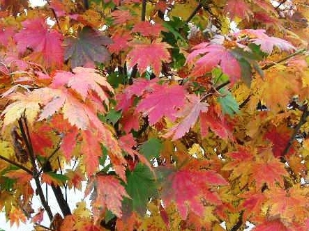 (Vine-leafed Maple) A fantastic garden selection with brilliant red-orange autumn colour. Purple-red flowers are borne in clusters before new foliage emerges in spring. Leaves are large, lobed and have serrated margins. Suitable for all landscape situations when planted in a protected area. Grows approx 5m tall x 5m wide.