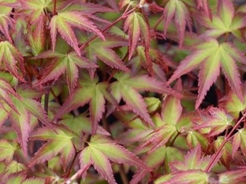 Small deciduous low-growing shrub layered branching appearance and lobed red-tipped green leaves that change colour in Autumn. Great to use in rockeries and Asian themed gardens. Grows approx. 60cm tall x 1.2m-1.5m wide.