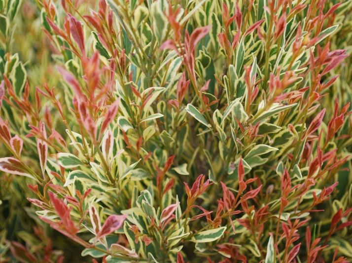 Every landscape needs a touch of lightness and some plants do it without even flowering. The smooth soft pale green & lemon foliage of this small shrub catches the eye, but even more so when it’s flushed with sunset-pink new tips that cover the plant for many weeks in spring. Any small garden space that needs a lift will be perfect, or use it to create a border or low hedge along a pathway. It only needs minimal trimming to keep it neat. Sun or shade and good drainage, cool temperate to sub tropical climates, and some protection from frosts or strong coastal winds are all that’s required. It’s one of those easy going plants that make you so glad you chose it.
