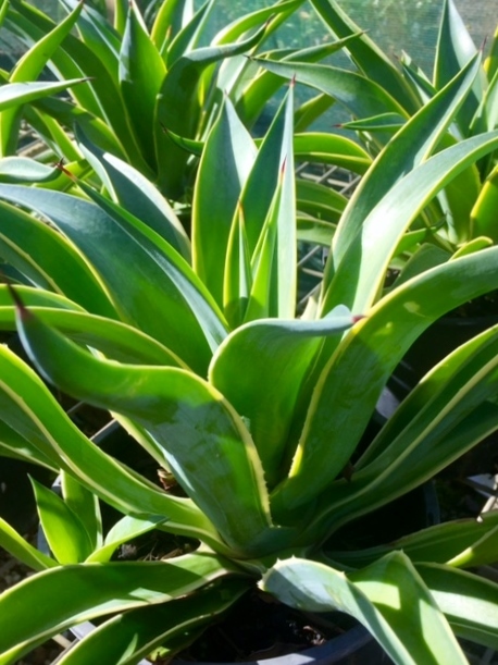 Attractive fast-growing rosette forming succulent with thick pointy grey-green leaves with golden-yellow edging. Only takes up to 5 years to reach mature size. Works equally well in a feature pot as a statement or mass planted in a tropical landscape. Grows approx. 1m tall x 1m wide.