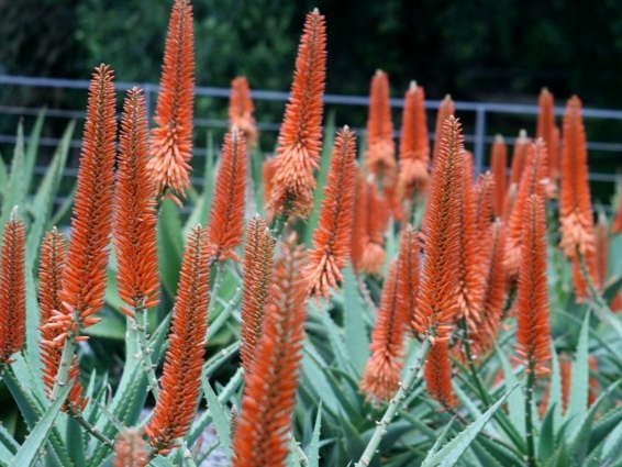 An early and strong flowering aloe that will eventually grow a stout stem or trunk capable of supporting the massive orange coloured flowers. Suitable as a feature plant in the garden, in a pot or in tough landscaping conditions.
