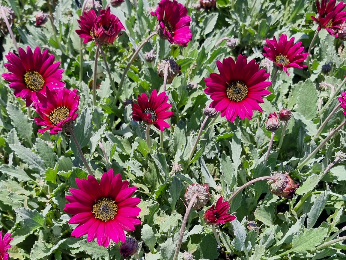 Very hardy clumping plant with elegant silver foliage and large plum long stemmed flowers, 10cm in diameter. Ideal for banks and rockeries, thriving in dry areas. Looks quite affective when used as a ground cover under trees and shrubs.