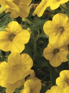 Calipetite calibrachoas produce an abundance of yellow blooms which cover the small, mounded plant all season long. Perfect as a patio pot plant, in baskets or as a table decoration in a sunny spot. Calipetites are heat tolerant and easy to grow.