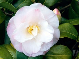 Medium upright evergreen shrub with shiny dark green foliage and beautiful large pale-pink and white semi double flowers. Flowers appear from Winter through to Spring. Great for planting under trees or in a semi-shade position, growing to around 3m tall.