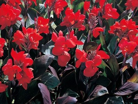 Tropical Bronze Scarlet is a stunning dwarf Canna that has deep bronze to purple foliage and brilliant large scarlet flowers. A fantastic plant to fill a space with lush vibrant colours looks, best when used in mass plantings.