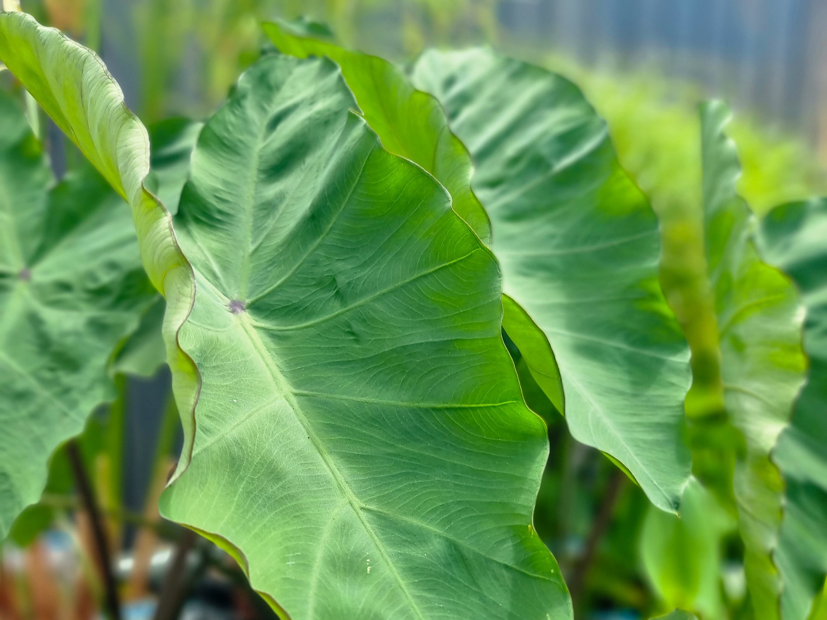 Tropical perennial with upright large elephant ear-like green foliage. Great foliage feature in a tropical garden. Edible corms are know as taro. Grows approx 1.5m tall x 1.5m wide.