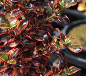 Bred from the famous Coprosma Evening Glow, Coprosma Inferno is a great little evergreen shrub that has interest and life all year round. During spring and summer the foliage of Inferno has wonderful variegation of lime green edged in red. As the weather cools the colours change to brilliant pinks and deep red. Coprosma Inferno is excellent for general gardening, small hedges and mass plantings. Inferno is ideal as a container plant that combines superbly with any terracotta pot. It is a hardy shrub that will grow to 1.5m x 1.5m.