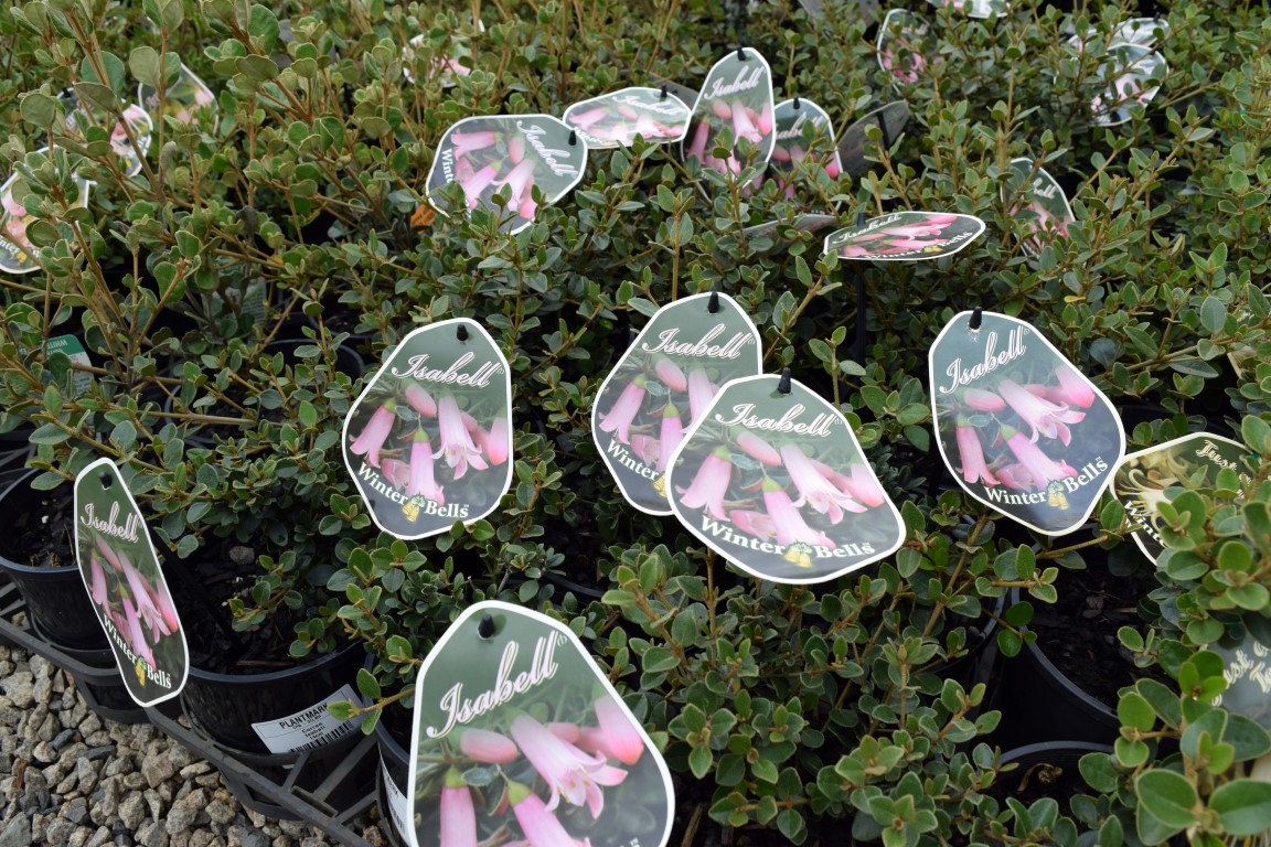 A small spreading shrub 50cm high by 1m across. 'Isabell' is covered in pale pink bell shaped flowers from autumn to winter. Great to use as an informal hedge or for rockeries. Bird attracting.
