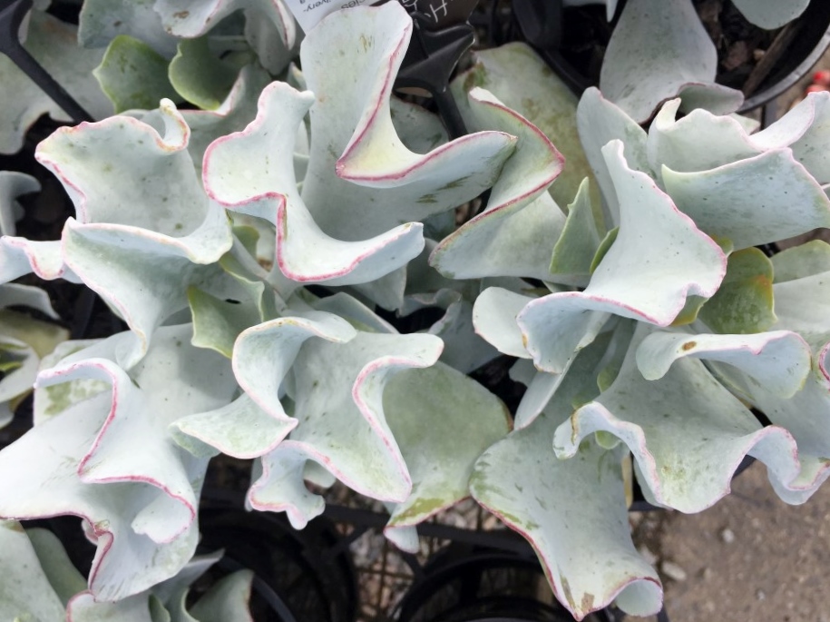 Attractive South African succulent that has greyish-white wavy leaves and clusters of orange-red bell-like flowers that sit on stalks above the foliage during winter. Great feature plant in a container or modern garden. Grows approx 50cm tall x 50cm wide.