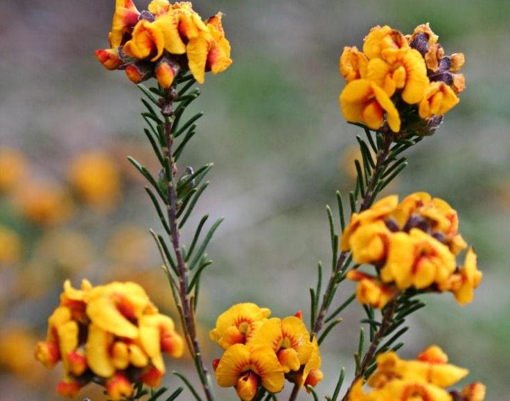 Dillwynia cinerescens Grey Parrot Pea,