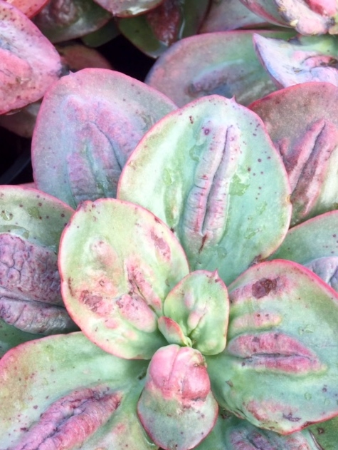 Unique looking succulent with green, red and silver bumpy foliage. Rose-like shaped low growing plant. Growing approx. 15cm x 20cm. Great for pots or rockery gardens.