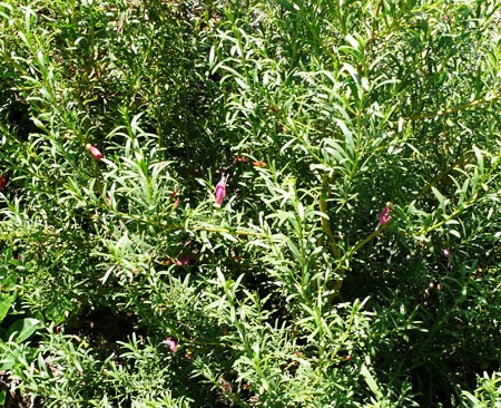Dense, native shrub usually growing to between 50cm - 2.5m tall and up to 2m wide. Attractive flowers are produced from winter to early summer and are tubular in shape with a pale, spotted throat. These are nectar rich and provide a valuable food source for nectar eating birds. Eremophila Wendy has attactive redd buds which burst open to produce dark pink flowers.