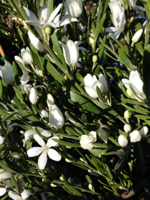 A stunning native shrub with fine, aromatic foliage and masses of brilliant white star shaped wax flowers that appear throughout spring and summer. Makes a great informal hedge, feature plant or container specimen, getting to approximately 1m x1m in size.