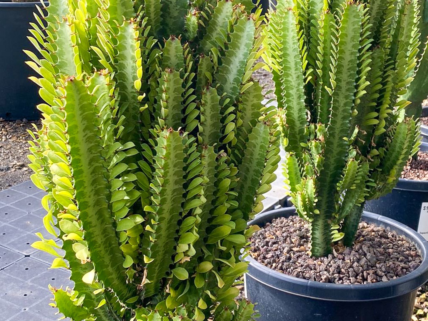 Unique succulent perennial with dark-green oval-leaves that grow along triangular-shaped stems. Unique flower heads appear from Spring to Summer. Easy to grow. Great to use in large containers. Grows approx. 2.7m tall.
