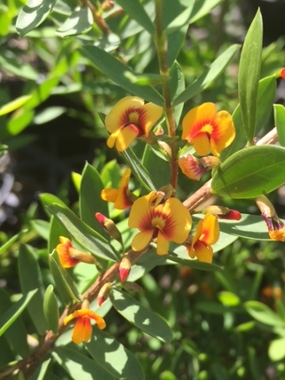 Medium native shrub with a beautiful display of long-lasting orange and yellow pea-shaped flowers during Spring. Great for coastal gardens, growing in containers or as an informal hedge. Grows approx. 1m tall x 1m wide.