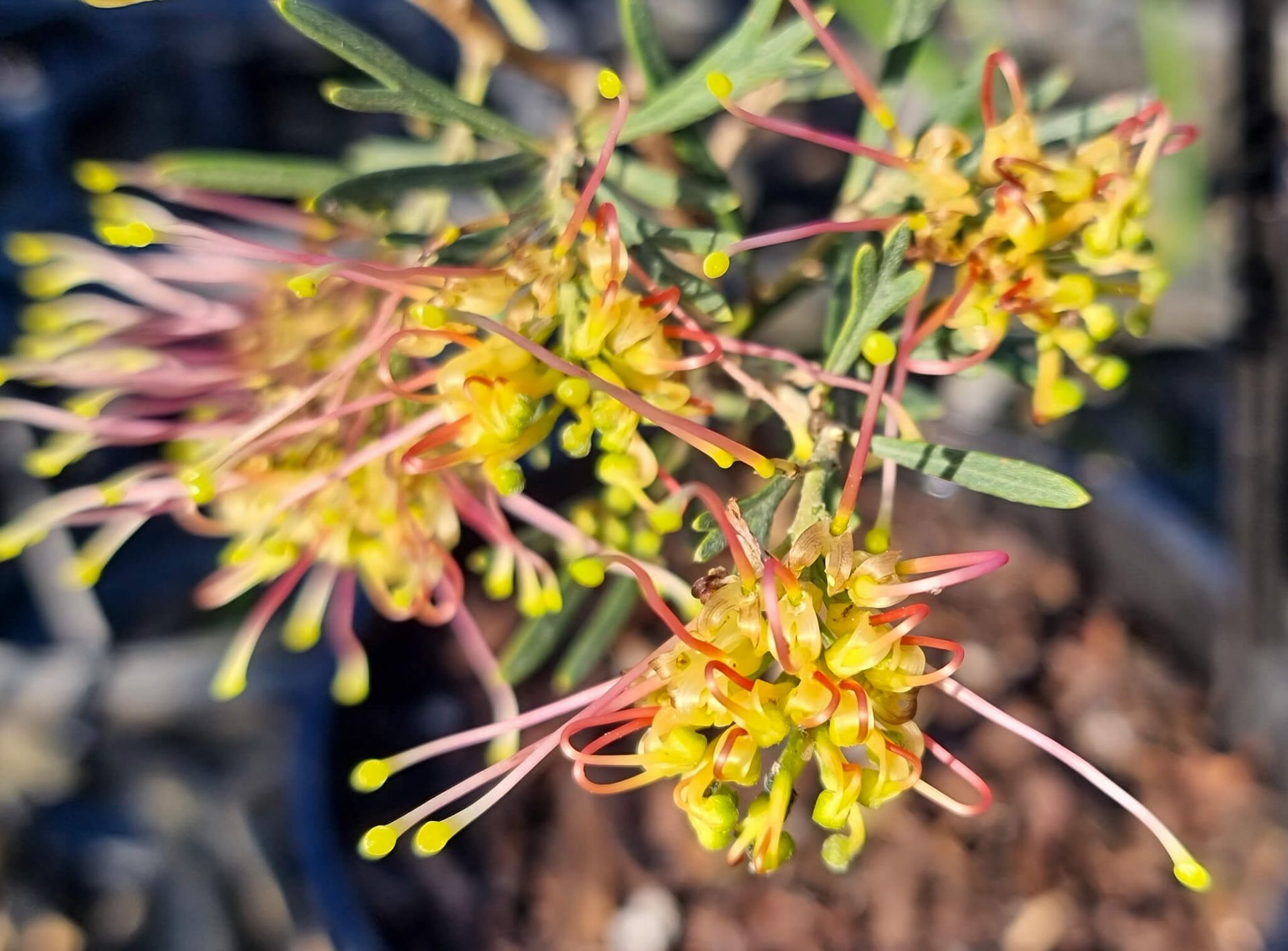 Grevillea hybrida Winpara Gold Spider Flower, Toothbrush Plant,