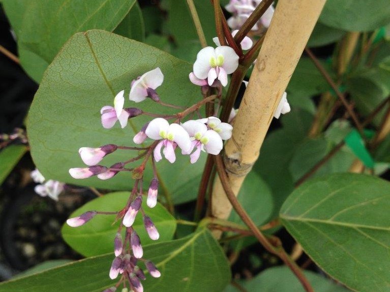 A form of Hardenbergia that can be grown as a bushy shrub or trained as a climber. Dark green foliage and violet small pink pea-shaped flowers that occur from late winter to early spring on twining stems.