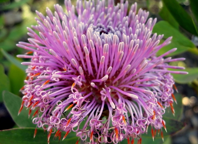 Medium evergreen native shrub with dark green foliage that has large mauve-pink cone flowers, and which will make a statement in any garden throughout spring and early summer. The plant is best used for native or dry tolerant gardens in mixed borders. The flowers, which are born at the end of stems, can be cut and used for an indoor display.