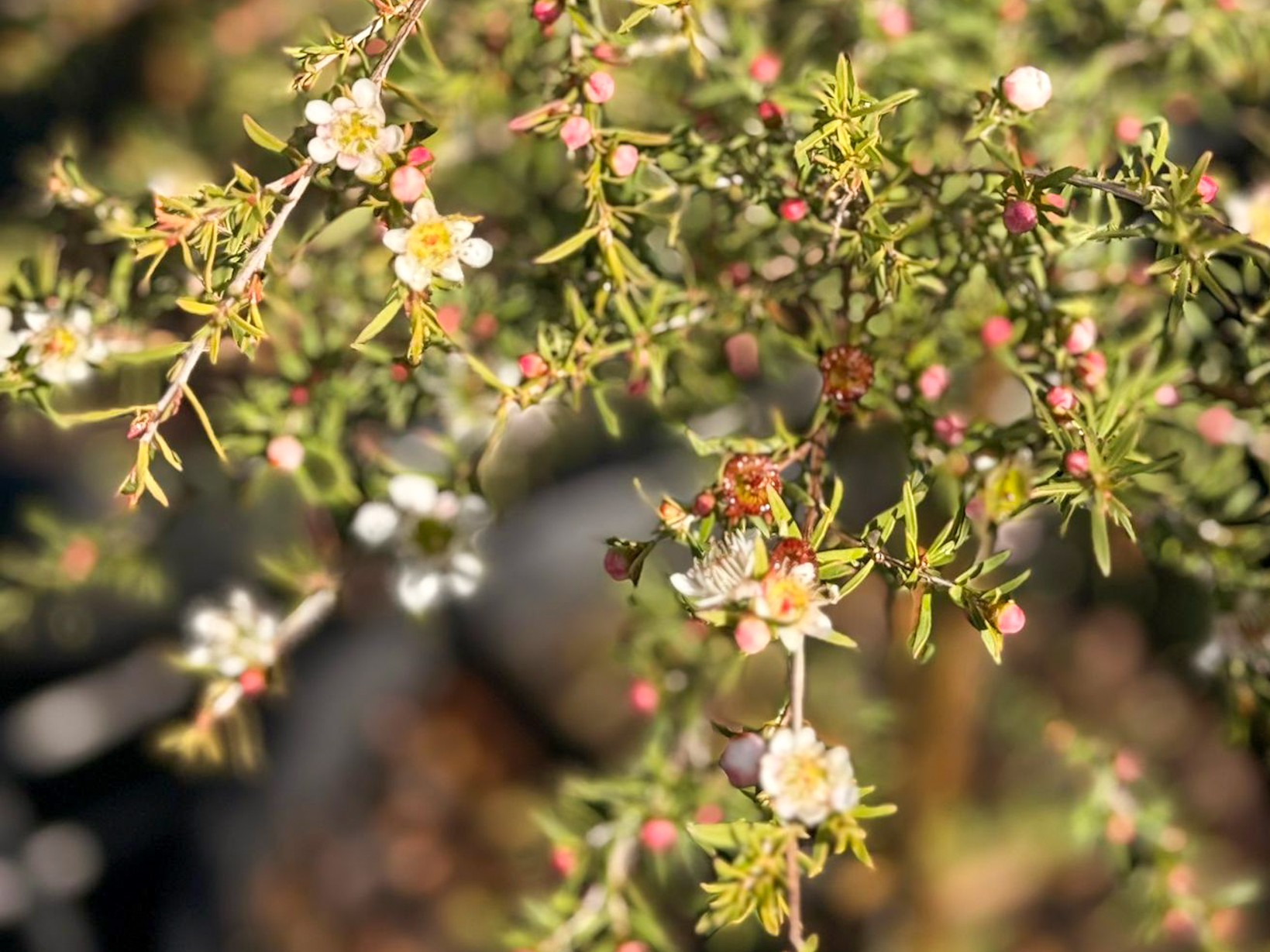 Fast growing, native shrub with wonderful aromatic foliage. Branching is pendulous and little white flowers appear in late Winter through to Summer. Great for small gardens. Makes an excellent screen, informal hedge or windreak. Contains essential oils suitable for candles, soap making and as a herbal tea. Grows approx. 2m x 2m