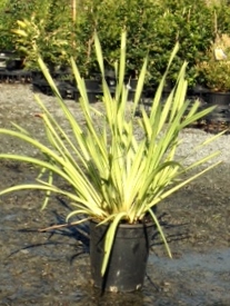 Attractive tufting native perennial grass with arching, green and yellow variegated strap-like foliage. Leaves often taller than the yellow coloured flower spikes. Fast growing and long living, suits both domestic gardens and commercial settings. Grows approx. 50cm tall x 50cm wide.