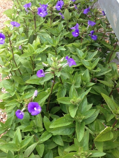 Lovely evergreen compact perennial with bright green lanceolate leaves and masses of blue sweetpea-like flowers from Spring through to Autumn. Foliage has a mint scent. Great for containers and to use for a flower border. Good cut flower.