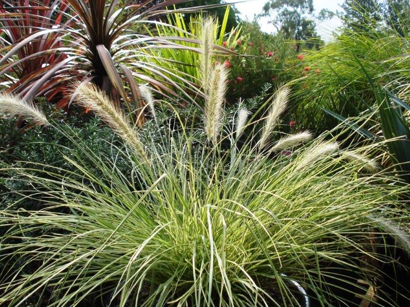 Pennstripe™ Pennisetum is a beautiful contrasting landscape plant with feathery plumes that compliment its fine foliage nicely. It grows to 2/5 the size of its common form. NOTE: Do not get this native Australian Pennisetum alopecuroides confused with the invasive African variety (P. setaceum). The native Australian varieties have a much wider plume than the exotic variety, and are non-invasive making them a safer choice. Size: 45cm high x 45cm wide. Uses: Mass plantings and specimen planting for borders, rockeries, roadsides, commercial and residential use.