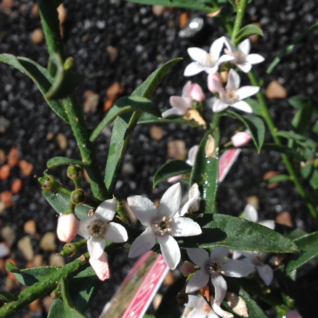 Formally called Eriostemon, Philotheca Ruby Cascade is a compact, hardy, long-lived shrub that handles windy and coastal positions. A multitude of starry, white flowers appear along the stems in spring and continue for many months. Attracts bees and butterflies, great for containers and general garden use. Grows approx 60cm tall x 1m wide.