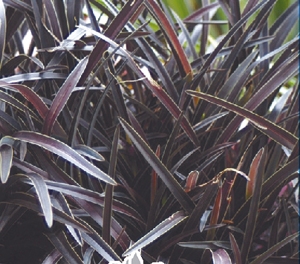 A truly dwarf Phormium growing 45cm x 30cm featuring fine black to copper bronze foliage highlighted by a fine lime green leaf margin. Ideal for mass plantings in a low maintenance landscape and roadside verges.