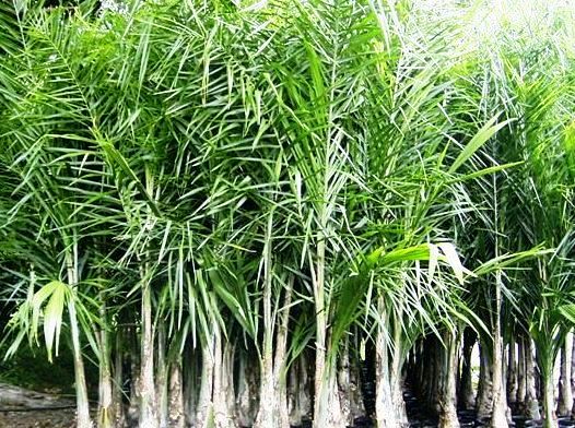 Large, rigid palm with a smooth grey trunk and upright arching dark green fronds that has been used extensively in Aust landscaping. These palms produce large clusters of fruits that turn orange and spread readily via bats and after dropping on the ground. A native alternative should be chosen instead for QLD and NSW. This palm can be untidy, retains hanging dead fronds and fermenting dropped fruits. If you do chose to use, please remove and dispose of the seeds. Also known as Arecastrum romanzoffianum.