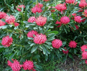 The stunning Telopea Essie's Gift PBR offers something truly special in waratah circles. It rewards with spectacular displays of deep pink flower heads throughout the spring making it a real statement plant. This variety is famed for its low growing, compact form which means it can be enjoyed in a wide range of garden applications from hedging through to single specimen planting. The large flower heads are borne on short arching stems and can also be enjoyed in cut flower displays. • Spectacular low growing displays of bright colour. • Make a statement with an unusual low native hedge • Medium to large containers • Enjoy indoors in cut flower arrangements