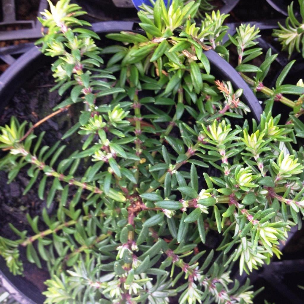 Naturally tidy prostrate Westringia with grey-green foliage and white flowers. Useful for erosion control and as a groundcover. May also be grafted as a weeping standard. Grows approx 10cm tall x 1m wide.
