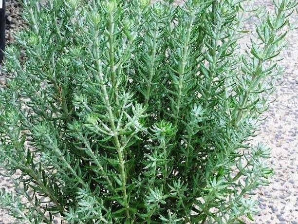 A compact, native dense form of coastal rosemary with soft green/grey foliage. Small starry white flowers appear in spring and summer. Native shrub that can be easily pruned into a ball shape or used as low hedge. Suitable for coastal conditions. Hardy plant that flourishes in harsh conditions. Prefers full sun. Frost, drought and salt tolerant. Grows approx 1m H x 1m W.