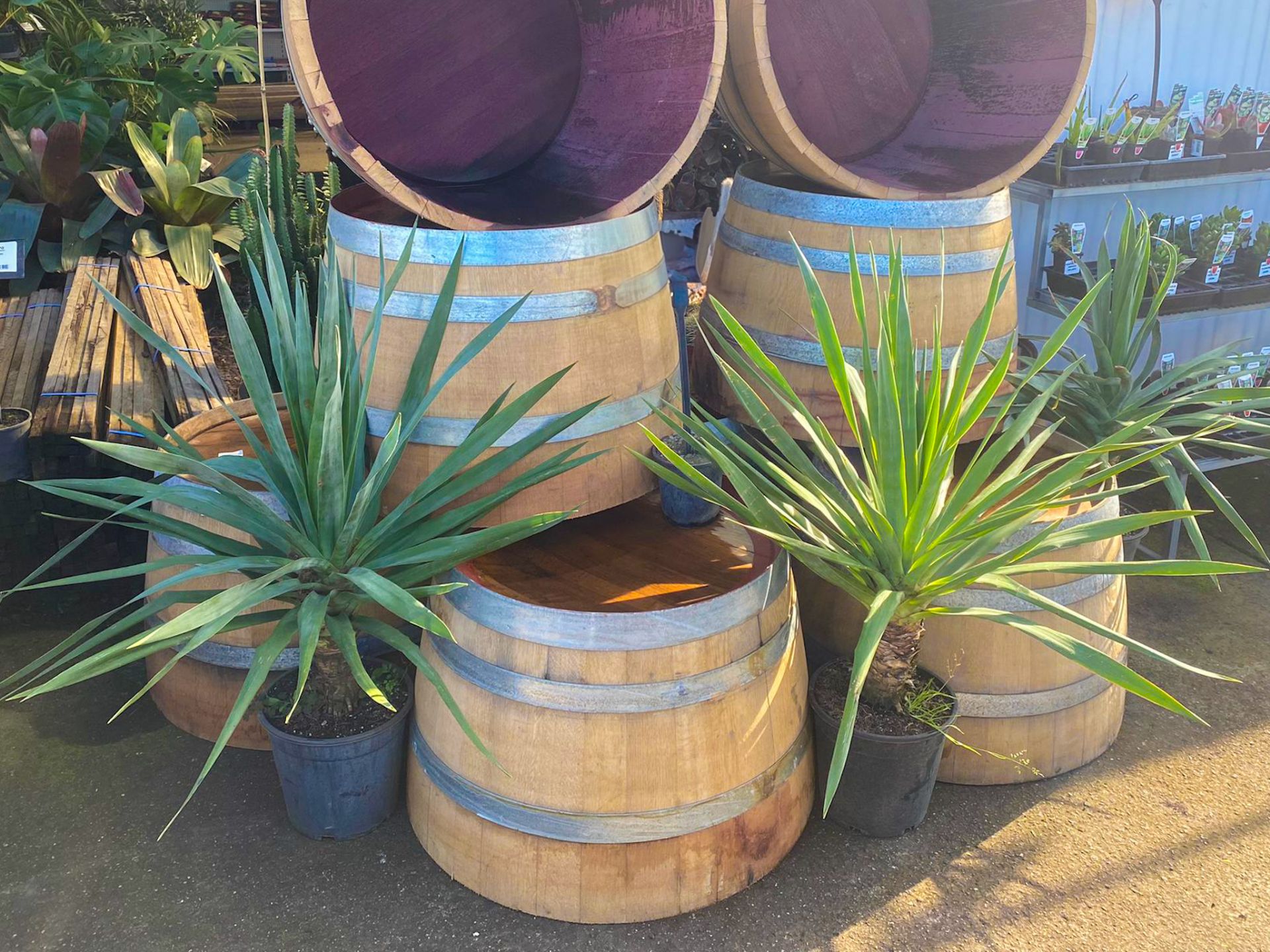 Oak Barrel - Half (Authentic ex-winery stock) Size (approx): Diameter 60cm (at opening) Height: 40cm Weight: 22kg If using as a planter, it is recommended to drill drainage holes in the bottom.